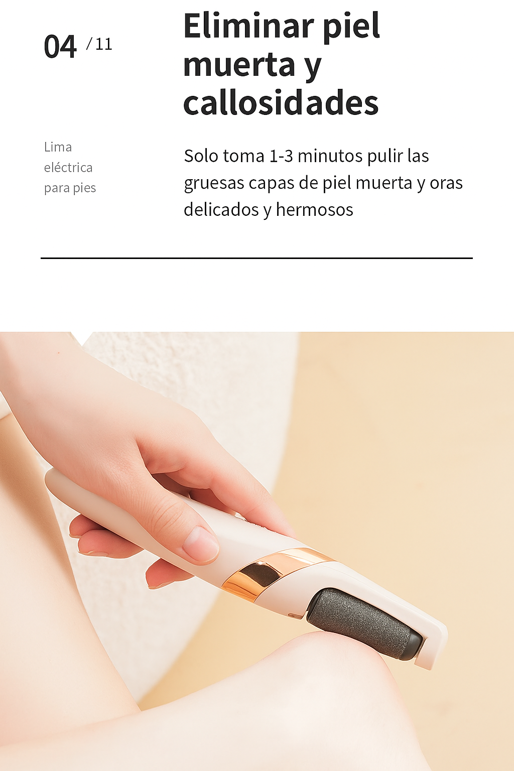 Para obtener mejores resultados, use PulíPie una o dos veces por semana, dependiendo de la gravedad de sus callos y zonas ásperas.